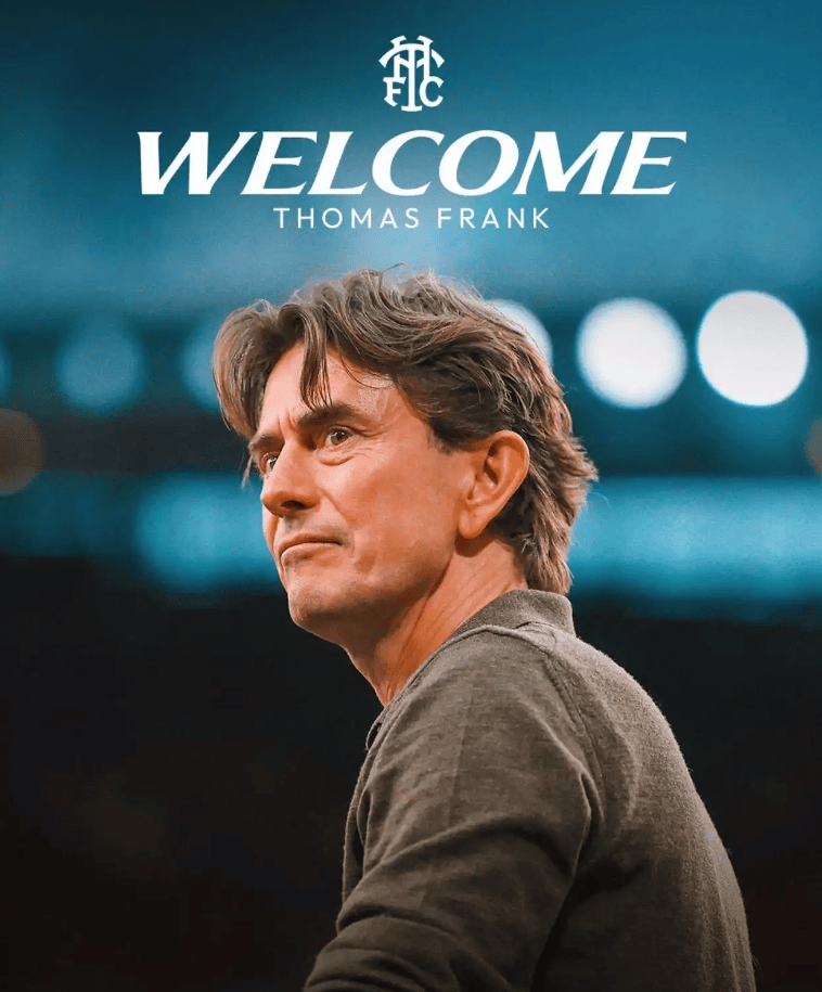 热刺官方公告称:我们非常高兴地宣布,托马斯-弗兰克已被任命为我们的新任主教练,合同有效期至2028年。